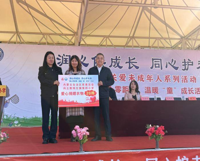 9月28日,自治区慈善总会联合各服务机构为呼和浩特市土默特左旗第四小学困难学生发放冲锋衣20件。